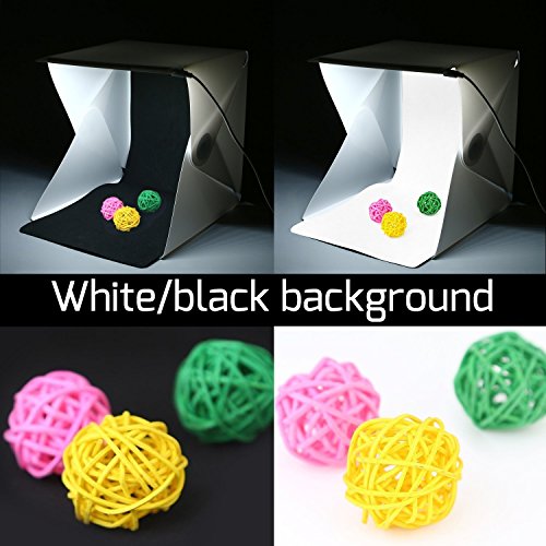 Mini pieghevole Studio fotografico tenda, fotografico portatile Studio con luce LED Bianco e Nero Sfondo (22.6cmx23x24cm, Nero)