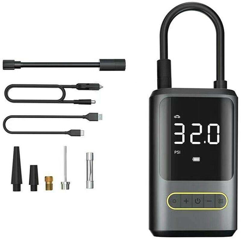 La pompa ad aria per auto intelligente ti consente di rilevare la pressione dei pneumatici sempre e ovunque e di rifiutare gli scoppi dei pneumatici causati da una pressione dei pneumatici troppo alta o troppo bassa, rendendo la guida più sicura. < b>Specifiche: Colore: nero Materiale: ABS + metallo Tensione in ingresso: 5V />Potenza in uscita: 60 W Intervallo di gonfiaggio: max. 150PSI Flusso d'aria: 35L/min Unità: PSI, BAR, KPA, kgf/cm2 Batteria: batteria al litio integrata con capacità di 4000mAh Rumore