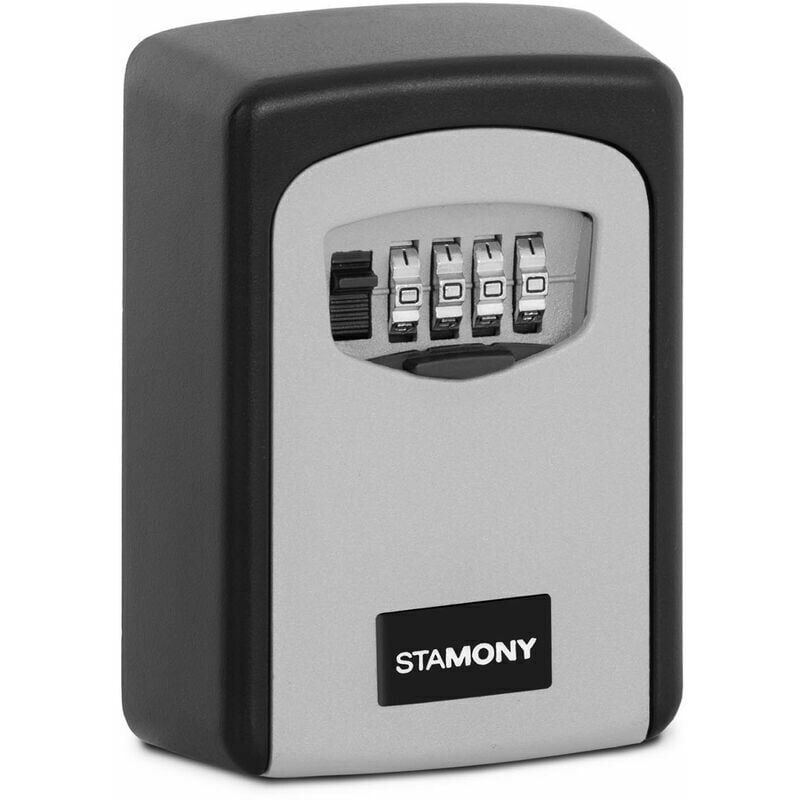 Key Box - Lucchetto a combinazione - Montaggio a parete - Coperchio Questa custodia per chiavi con serratura e resistente alle intemperie consente di conservare alcune chiavi o persino un intero portachiavi nel caso in cui persone non autorizzate lo utilizzino. Con l'hardware di montaggio incluso, può essere fissato ovunque sia necessario per tenere le chiavi a portata di mano. Il portachiavi a parete con vano interno è realizzato in solida lega di alluminio e protetto da una serratura a combinazione a quattro posizioni. La combinazione può essere modificata in qualsiasi momento. Per non vedere subito la serratura, la cassetta delle chiavi ha un coperchio per nasconderla. La copertura protegge la serratura da polvere, pioggia, neve e vento. dettagli tecnici Materiale dell'alloggiamento Lega di alluminio grigia Meccanismo di chiusura Coperchio del meccanismo di ripristino del codice di blocco a combinazione a quattro posizioni Dimensioni esterne (LxPxA) 117*82*37 mm Fornitura 1 *