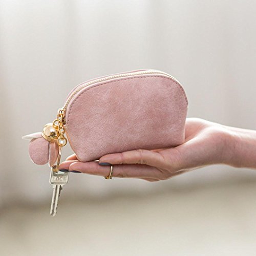 Mini Portafogli,Kword Le Donne In Pelle Piccolo Mini Portafoglio Fiore Ciondolo Titolare Della Borsa Portamonete Pochette Borsa Portachiavi (Rosa)