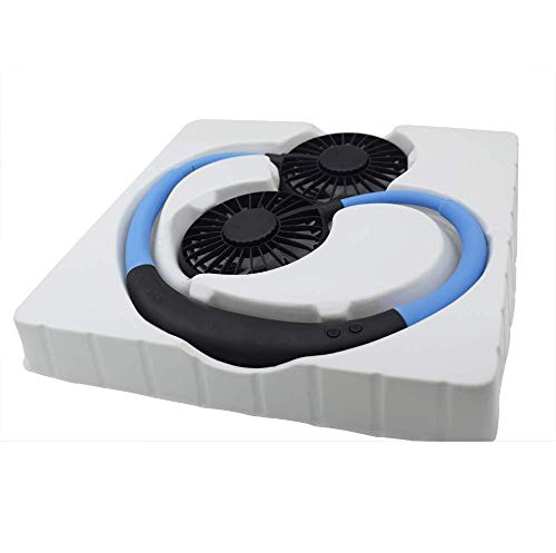 Mini Portatile Ventilatore Appeso al Collo, USB Ventilatore Sport Ricaricabile a Mani Libere Personale Palmare, Auricolare Design Auricolare Wearable Necklance Fan with LED Double Wind Head(Blu)