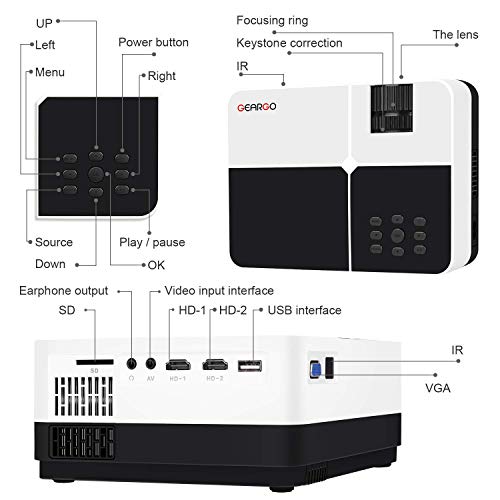 Mini Proiettore, GEARGO Videoproiettore 2800 Lumen Supporta 1080P Full HD, 50.000 Ore, Proiettore Portatile Home Theater Compatibile con Amazon Fire TV Stick / Laptop / XBOX/ HDMI / VGA