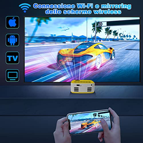 ❤️ [Supporta la connessione WiFi, senza ostacoli]: il nostro innovativo proiettore WiFi offre una connettività USB cablata affidabile e il mirroring dello schermo wireless per iOS/Android. Godetevi film, musica, video, chat e telefonate con le vostre persone preferite via WiFi: con il nostro mini proiettore, la vostra casa diventa un cinema mobile!