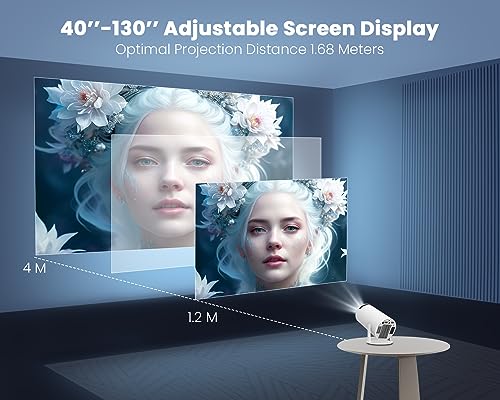【Proiettore Freestyle a 180°】 L'innovativo mini proiettore è dotato del notevole chip Hi-chip A3100 e di una memoria da 1+8 GB. Il suo unico supporto girevole a 180° ridefinisce la tua esperienza visiva, consentendoti di sdraiarti a letto e immergerti in film al soffitto fino a 130 pollici. Questo dispositivo non è dotato di un sistema operativo Android.
