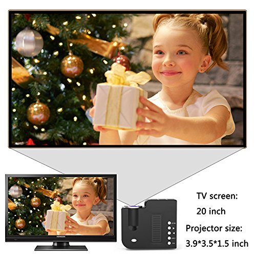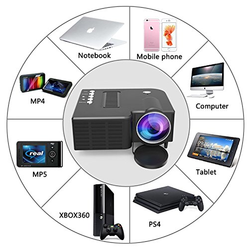 ★ interfaccia: HDMI, VGA, USB, AV e interfaccia di casco. Connessione diretta ai tuoi dispositivi con uscita HDMI, VGA o AV e memoria SD, dispositivo di archiviazione USB, cuffie e altoparlante esterno. Per connettersi con il tuo smartphone, tablet o Mac, disporre che utilizzare cavi aggiuntivi (non incluso nella confezione).