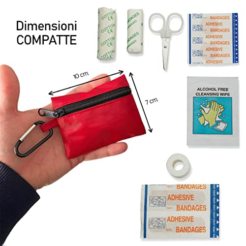 Mini Kit di Pronto Soccorso, kit medicale portatile, per auto o da viaggio, Small Kit primo soccorso portatile per auto, casa, campeggio con moschettone