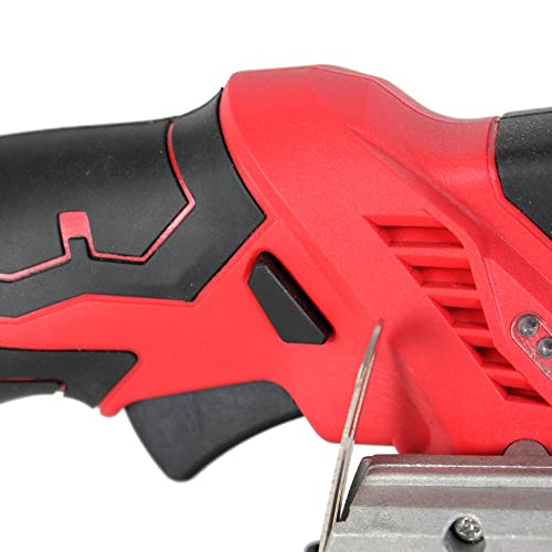 Mini Sega Circolare senza fili con guida - Batteria al litio ricaricabile 12V - Profondità di taglio max 26mm (90°), 18mm (45°) - Angolo regolabile - Lama Ø 85mm - Caricatore incluso - 30 x 16 cm