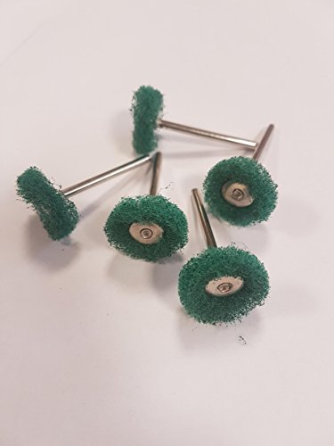 5pz - Mini spazzola NON TESSUTO VERDI a disco D.25 - gambo 3mm in acciaio x dremel mini trapano
