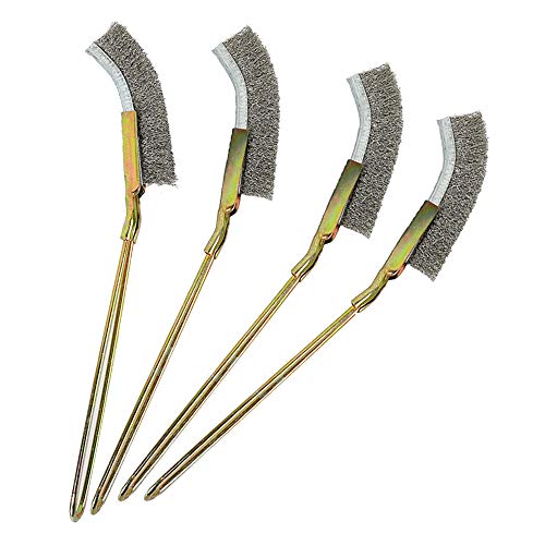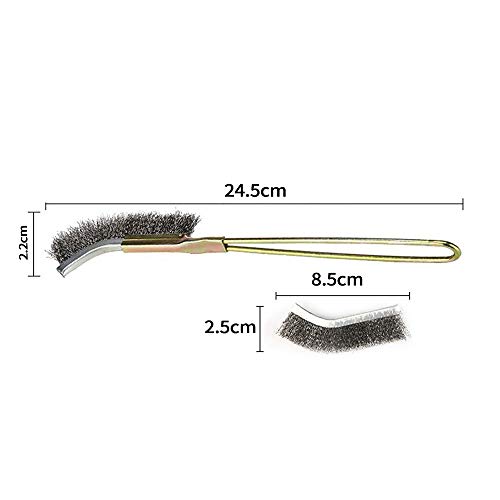 Mini spazzole in filo di acciaio, mini set di spazzole con manico curvo in acciaio inox per la pulizia di scorie, ruggine e polvere
