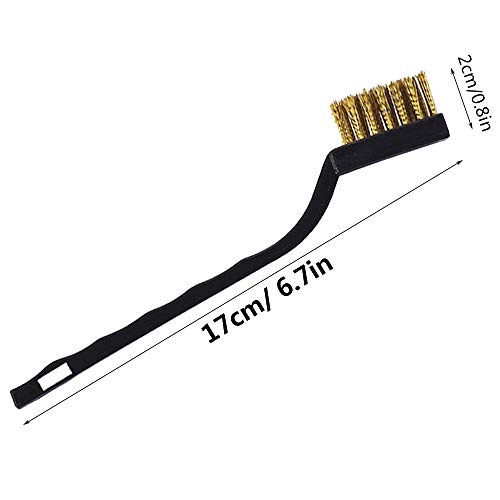 Set di 10 mini spazzole in filo di ottone con spazzola per graffi, manico curvo per muratura, setole metalliche per la pulizia di saldature e ruggine