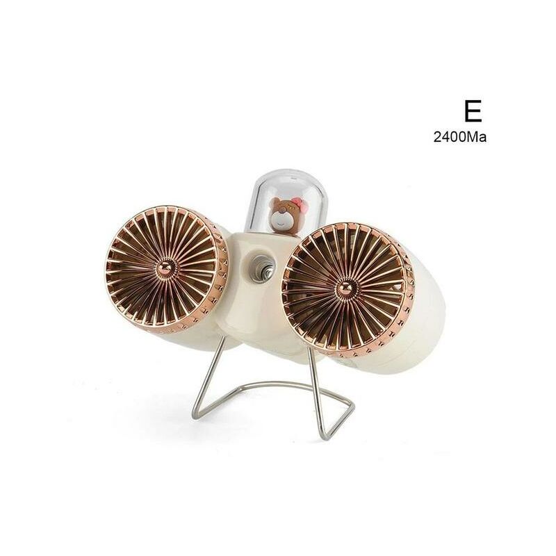 Product nameDouble-blade spray fanThree-speed wind speedLong press the switch will have colorful lightsProduct size: 15*10*12.5cmProduct color: red, white, greenBattery capacity: 1200mAh lithium battery/2400mAh lithium batteryoperating hours:The highest wind speed: 1200 mA (1.5-3h)The highest wind speed: 2400 mA (3-6h)Charging time:1200mA (0-1h)2400 mA (1-2h)Package includes: 1*Double-blade spray fan Thank you for your support!Welcome to buy from us!There are so many useful and cheap item in our store. Have a nice day!