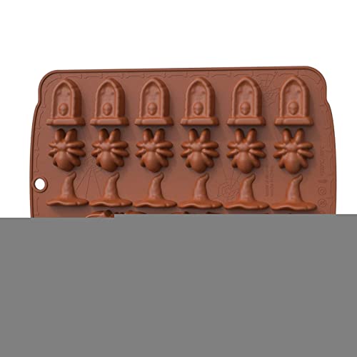 * Forme uniche: 5 diversi disegni di stampi per Halloween con un totale di 30 cavità in diverse forme, tra cui zucche, pipistrelli, cappelli da strega, ragni e lapidi.