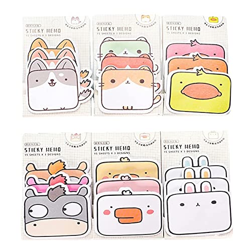 Mini Sticky Notes, 6 Specifiche 270 Fogli Set Note Adesive Con Animali, Note Adesive Autoadesive, Note Adesive Carine Dei Cartoni Animati, Note Adesive Colorate Promemoria per Casa, Ufficio, Scuola