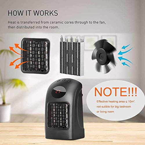 Mini Stufetta Elettrica Termoventilatore Portatile, Queta Riscaldatore Elettrico Portatile da 900W Consumo Ridotto di Energia Temperatura Regolabile, per Bagno/Stanza/Ufficio con Cavo 1,5 m