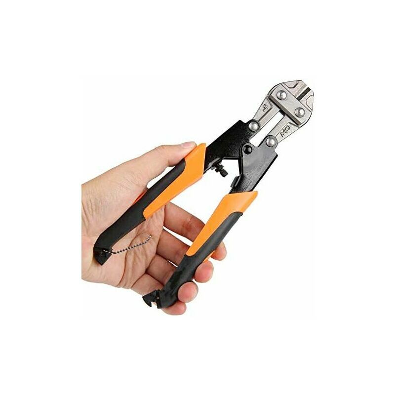 MATERIALE DI COSTRUZIONE: I mini tagliabulloni sono realizzati in acciaio CRV premium, resistente alla ruggine e alla corrosione, che è più durevole rispetto ad altri tagliabulloni tradizionali simili. BUON DESIGN: il design ergonomico conferisce al tagliabulloni eccellente capacità di taglio che può aiutarti ad ammorbidire l'impatto e proteggere la mano e il polso, ridurre il dolore alla mano causato da un uso prolungato. CAMPO DI APPLICAZIONE: le mini tronchesi multifunzione da 8 pollici sono perfette per tagliare i bulloni, catena, barra filettata, filo, ecc. GRANDE MANIGLIA: questa maniglia antiscivolo può ridurre l'affaticamento della mano, risparmiando notevolmente le forze e migliorando anche l'efficienza lavorativa dell'utente. < p>FUNZIONAMENTO CONVENIENTE: il mini tagliabulloni che è un utensile da taglio per cesoie in ferro metallico può essere azionato facilmente con la mano destra o con la mano sinistra.