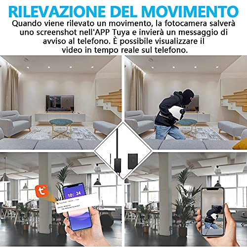 Mini Telecamera Spia, Portatile Telecamera Nascosta Wifi Senza Fili Telecamera di Sorveglianza di Sicurezza con Rilevamento del Movimento Sorveglianza in Tempo Reale per iOS e Android (App Tuya)