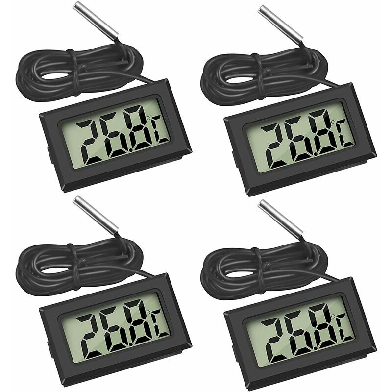 Intervallo di misurazione della temperatura - -50 ℃ ~ + 110 ℃, temperatura di lavoro: -10 ℃ ~ + 50 ℃, precisione della misurazione della temperatura: ± 1,0 ℃. 【Dettagli del prodotto】 Dimensioni del prodotto: 48 *28*15 mm. Batteria: 2 batterie a bottone LR44 da 1,5 V. Lunghezza del cavo: 1 m. 【Design della sonda】 Il prodotto utilizza un sensore metallico per testare la temperatura. La parte della sonda è progettata per essere impermeabile, ma il corpo del termometro non è impermeabile. 【Facile da leggere】Con display LCD, migliori effetti visivi, puoi vedere la temperatura in lontananza. Questo termometro ha una sonda, che può testare in profondità alcuni punti, i risultati desiderati facilmente. 【Ampia gamma di applicazioni】il mini termometro digitale con sonda è molto popolare, ampiamente utilizzato in salotti, serre, musical sale strumenti, cantine, scantinati, magazzini, ecc. Colore:4x nero Caratteristiche del prodotto: 1. Termometro digitale LCD con sonda per acquari