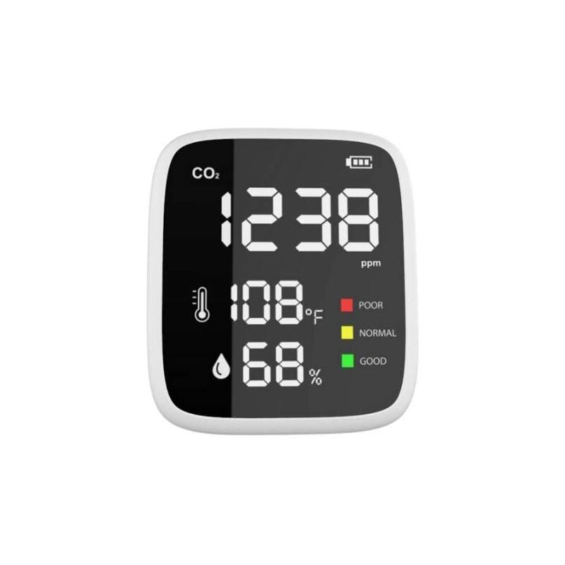 Sensore di gas in grado di monitorare con precisione la concentrazione di CO2, la qualità dell'aria e l'umidità in tempo reale. Igrometro digitale con termometro digitale per la casa. Sensore di qualità tedesco per la misurazione della CO2, qualità dell'aria (PM2,5), temperatura e umidità.