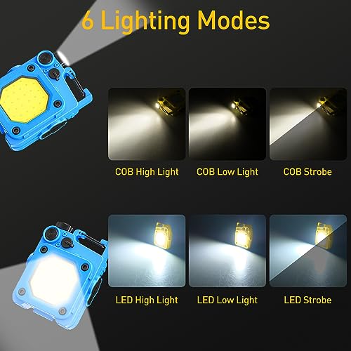 2 PCS Mini Torcia da Lavoro Portatile 6 Modi Mini Torcia Super Luminosa Torcia LED COB Emergenza con Base Magnetica per Campeggio, Pesca, Riparazione, Emergenza (Blu)