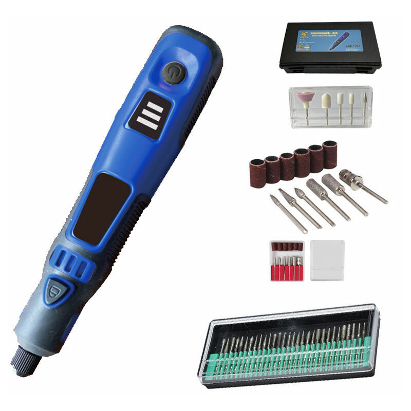 Parametri del prodotto Nome del tipo: mini trapano Batteria: litio Tempo di ricarica: 2 ore Tensione di carica: 5 V CC (USB) Diametro del mandrino: 1-3,2 mm Velocità: 5000/10000/15000 rpm Tensione di uscita incisione: 3,6 V Potenza nominale in ingresso: 10 W Tensione nominale: 110 V-220 V Caratteristiche: 1. Durevole e affidabile: piccolo volume, leggero, facile da trasportare, comoda impugnatura, fornisce un migliore controllo durante la perforazione., comodo da usare. 2. Velocità Regolazione - Questo utensile da intaglio elettrico ha 3 impostazioni di velocità, campo di regolazione della velocità: 5000-15000 giri/min. 3 accessori completi - dotato di 30 accessori per la foratura, tutti pronti e completi. 4. Smerigliatrice perfetta: smerigliatrice elettrica perfetta per tagliare, incidere, fresare, levigare, lucidare, rimuovere e forare. Il kit di incisione per smerigliatrice è necessario per intagliare e levigare fai-da-te. 5. Adatto per agata di giada, intaglio nucleare, intaglio