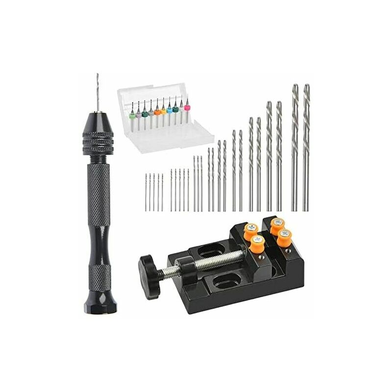 La confezione include - Il nostro set di trapani a mano da 37 pezzi include 1 trapano a mano con morsa a perno, 25 micro punte elicoidali (0,5-3,0 mm), 10 mini punte per trapano PCB (0,1-1 mm), 1 morsa da banco 【Morsa per trapano a mano】 Realizzata in lega di alluminio di qualità, leggera e piccola, facile da trasportare e riporre, adotta 3 artigli del mandrino, la sua coda può essere ruotata, robusta e comoda da usare 【Morsa da banco】 Realizzata in lega di alluminio, progettata con 4 viti per bloccare oggetti quadrati, rotondi e irregolari da 0 a 57 mm. Utilizzato per fissare piccoli oggetti, come conchiglie, olive, noci, orologi e altri piccoli oggetti 【Micro punte elicoidali】 Questa punta elicoidale è realizzata in acciaio ad alta velocità, le micro punte sono leggere e vinte non occupano spazio extra, sono ottimi strumenti da applicare per maneggiare legno, plastica, gomma, PVC, noce, modello, osso, ambra e altri materiali > 【Comodo e portatile】 Il trapano manuale manuale il set è