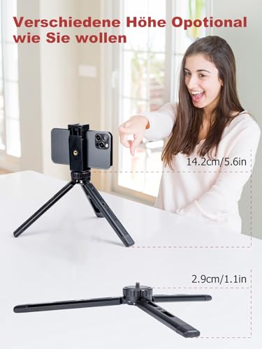 【Dimensioni del Palmo Della Mano, Facile da Impugnare】Questo treppiede da tavolo è grande quanto il palmo di una mano. L'altezza è di 17,6cm e il peso è di soli 190g. Leggero e facile da trasportare, è perfetto per i viaggi.