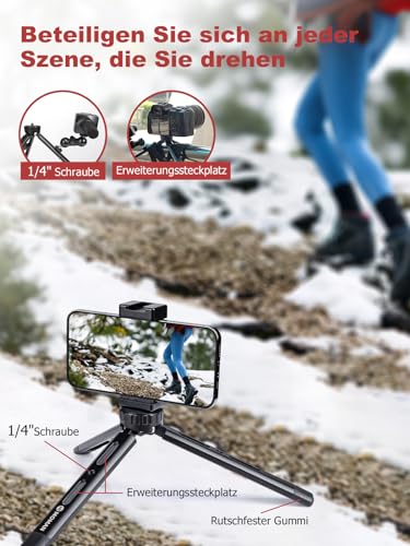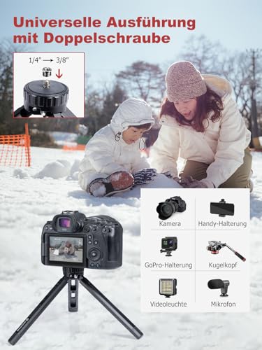 【Design a Doppia Vite per Un'ampia Compatibilità】 Il treppiede da tavolo con attacco a vite da 1/4'' a 3/8'' può essere installato senza rimuovere l'adattatore a vite, ad esempio per fotocamere DSLR, testa a sfera.