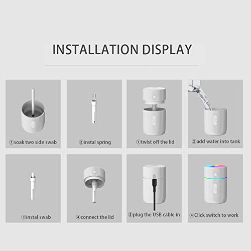 MINI UMIDIFICATORE PORTATILE E ALIMENTAZIONE USB - Il design portatile e piccolo è molto facile da portare ovunque. Questo umidificatore è alimentato da USB 5V/1A (non a batteria, il cavo USB è incluso, l'adattatore USB non è incluso). È possibile collegarlo con computer/power bank, presa/presa di corrente/collegarlo alla porta USB dell'auto.