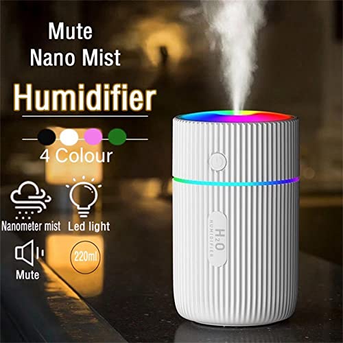 Mini umidificatore USB, diffusore di oli essenziali, purificatore per auto, per casa, aromi, anioni, nebulizzatore con luce notturna a LED, per ufficio, cameretta dei bambini, auto, colore: bianco