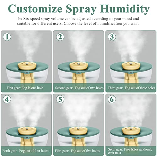 1. Nebulizzazione a 5 fori con 6 impostazioni di velocità: Questo umidificatore imita il design del fiore di loto, spruzzando la nebbia dai piccoli fori del fiore di loto, e la nebbia può essere spruzzata da un massimo di cinque fori. Inoltre, grazie alla funzione di regolazione della velocità di nebulizzazione a sei velocità, gli utenti possono regolare la quantità di nebulizzazione in base alle proprie esigenze. Mentre umidifica, decora la stanza.