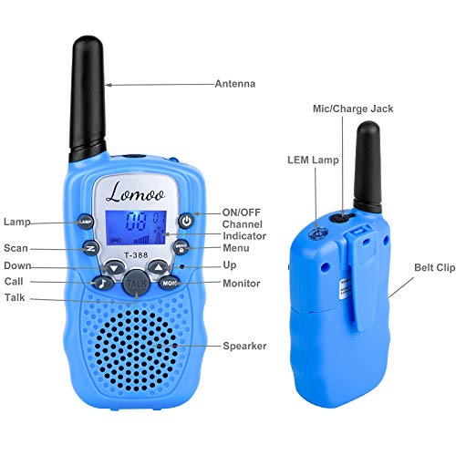 Mini Walkie Talkie, Lomoo Lungo Raggio PMR446MHz 8 Canali Walkie Talkie a 2 Vie Raidos con Batterie Ricaricabili e Caricatore Portata Fino a 3 KM, Display LCD VOX con Torcia LED Integrata - Blu