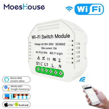 2 Way Mini Wifi Smart Light Switch Diy Module Smart Life/Tuya APP Wireless Remote Control Works with Alexa Echo Google Home