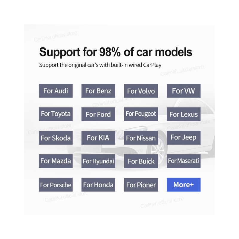 Fuienko 3.0 nuova versione Mini Dongle Wireless CarPlayU2W-mini: l'adattatore Wireless Apple CarPlay è l'ultima versione ufficiale nel 2022, può convertire rapidamente il CarPlay cablato in CarPlay wireless, necessita solo di circa 15 secondi, quindi è possibile configurarlo e utilizzarlo. Mini formato, puoi trasportarlo ovunque tu voglia.Veicoli e telefoni supportati:* 1. Supporta solo auto originali con CarPlay cablato integrato* 2. Il prodotto supporta solo iPhone da 5 a 13 Pro Max (non adatto per telefono Android)Caratteristica di prodotto:▲Enjoy vita di GuidaDopo la prima installazione, il nostro adattatore si avvia automaticamente e si collega rapidamente al tuo iPhone quando si avvia il motore dell'auto. Anche se il tuo telefono è nella tasca o nello zaino, il modulo WIFI integrato da 5Ghz lo rende rapidamente identificazione del tuo telefono.▲Support mulfunctionTPC-MINI supporta anche il controllo vocale, il controllo del volante, il controllo del touch screen e il