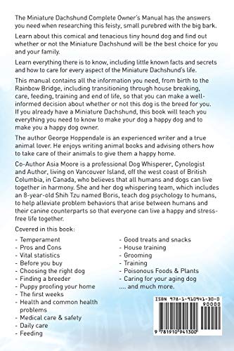 Miniature Dachshund. Miniature Dachshund Dog Complete Owners Manual. Miniature Dachshund book for care, costs, feeding, grooming, health and training.