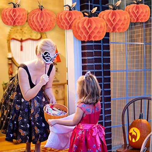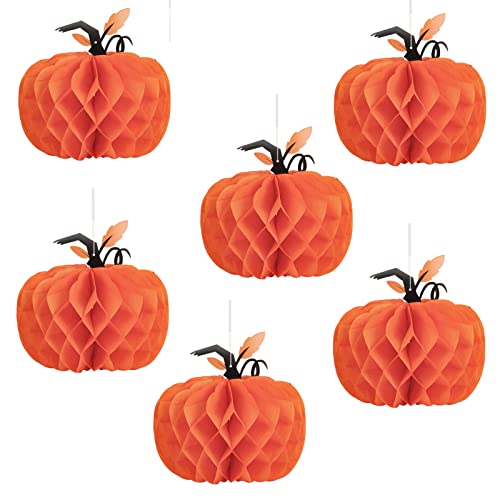 Minicoco Set di decorazioni per zucca di Halloween, 6 zucche riutilizzabili da appendere, zucca decorativa a nido d'ape, decorazioni a tema Halloween, per casa, giardino, casa infestata