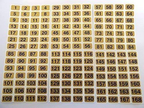Minilabel Etichette numerate consecutive, sequenziali, 16 x 10 mm, colore oro, da 1 a 168