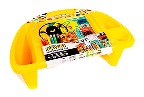Minions - Minion Travel Creativity Tray Arts and Craft Kit per bambini - Vassoio da viaggio, colorazione in fogli, pastelli, stencil, penne in feltro, adesivi Minion - ottimo regalo per lui