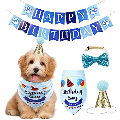 Regalo di compleanno per cani: questo set di accessori per festa di compleanno renderà il vostro cucciolo più affascinante e carino. La confezione include simpatica bandana di compleanno per cani, cappello, papillon e festone di compleanno.