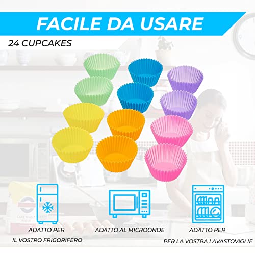 Minismus Stampi per cupcake, 24 pezzi, riutilizzabili, Pirottini in silicone per muffin e cupcake - mini antiaderente ecologici