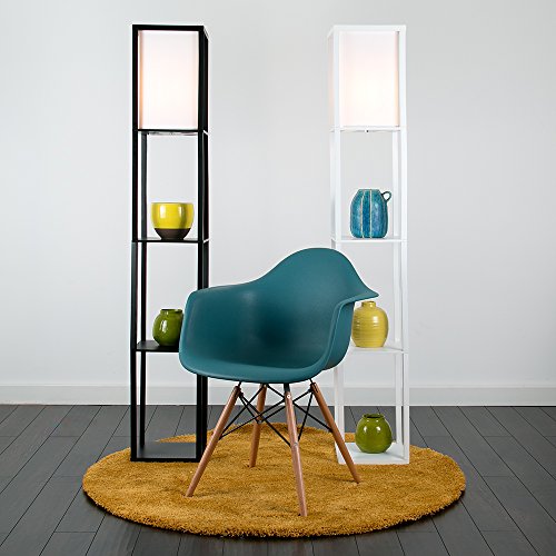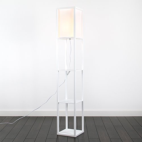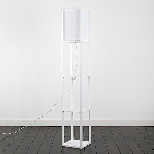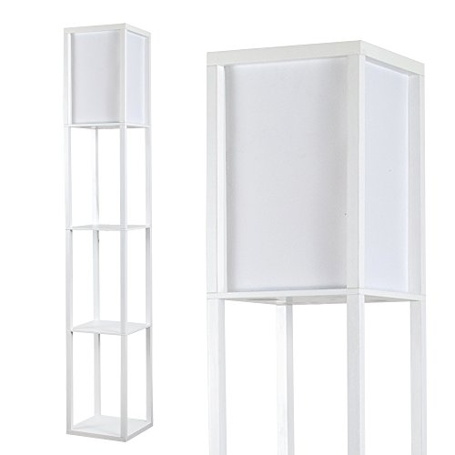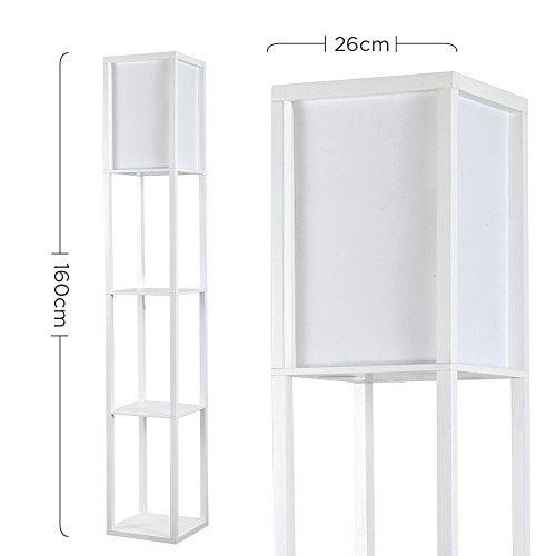 MiniSun - Lampada da terra moderna e bianca di legno e tessuto bianco con mensole integrate - Lampada da terra con mensole