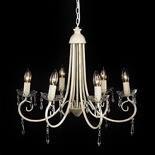 MiniSun Lampadario grande, montato a soffitto, in stile moderno e shabby chic, con 6 lampadine., White 40.0 wattsW