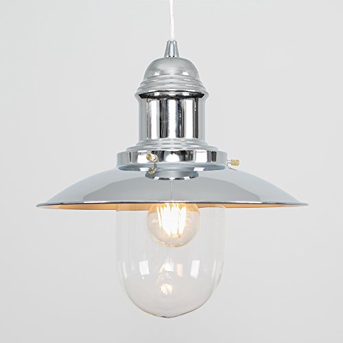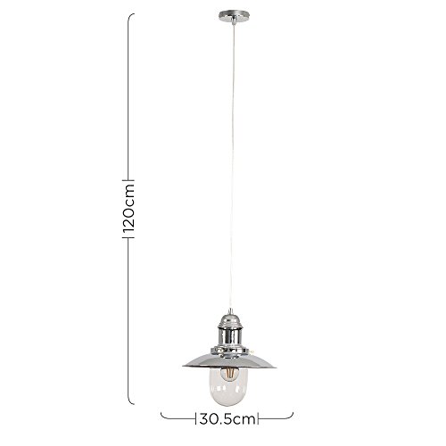 MiniSun - Lampadario a sospensione da soffitto, design moderno, a forma di lanterna da pescatore, struttura in metallo e vetro Chrome