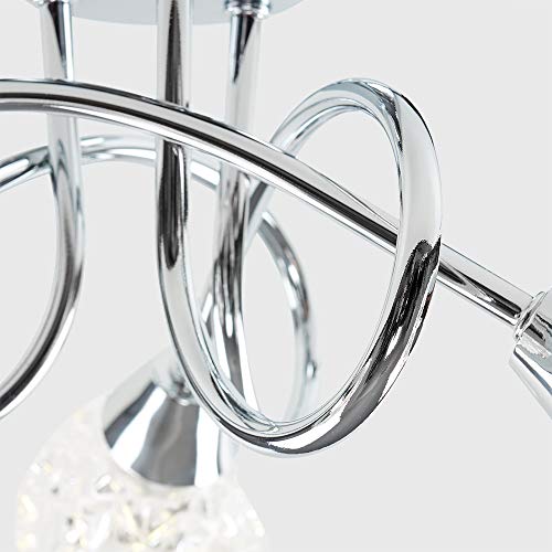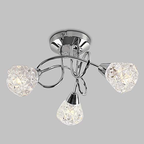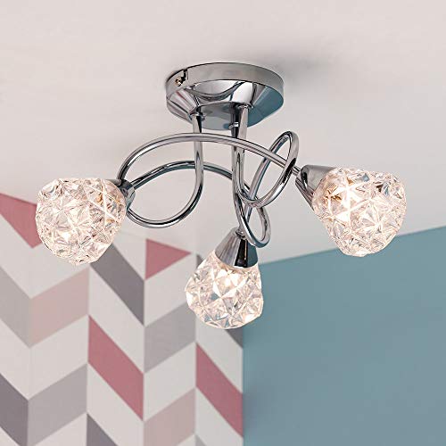 MiniSun - Plafoniera moderna, rotonda e cromata lucida con 3 faretti e paralumi di vetro con l'effetto di diamante - Lampada da soffitto