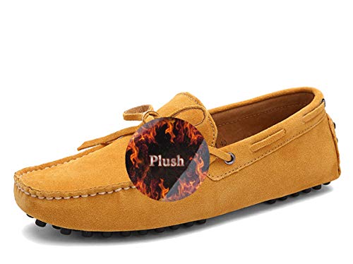 MINITOO Comode mocassini da uomo casual da guida mocassini con nodo, Inverno Giallo, 46 EU