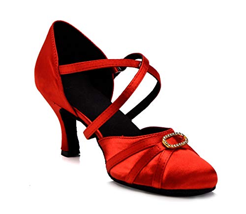 MINITOO Donna Punta Chiusa Raso Scarpe da Ballo Latino Nozze Sposa Scarpe Anello/Rosso EU 41