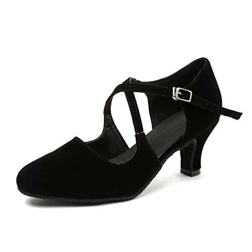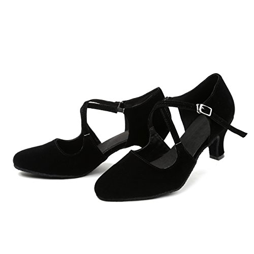 MINITOO Donna Sandali QJ6132 Punta Chiusa Tacco Basso in Pelle Scamosciata di Tango della Salsa della Sala da Ballo Ballo Latino Nero EU 42