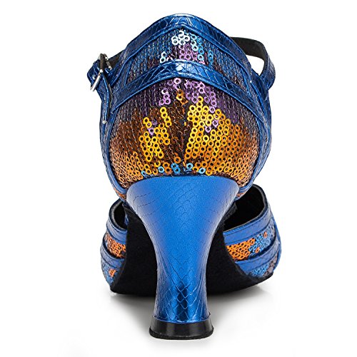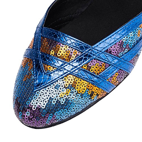 MINITOO Latin Salsa Donna Paillettes Punta Chiusa Blue Synthetic Sala Scarpe da Ballo Partito Sera Scarpe col Tacco EU 39.5