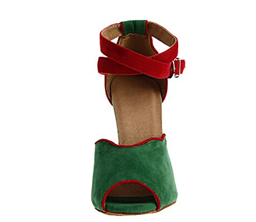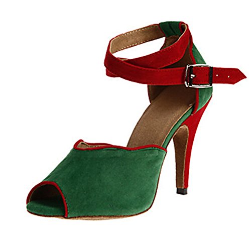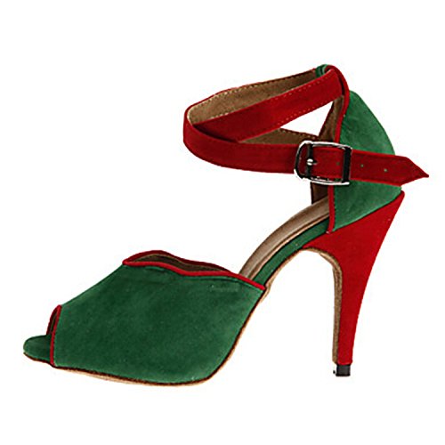 MINITOO Latino Salsa Donna Cinturino alla Caviglia Tacco a Spillo Verde/Rosso Scamosciato Scarpe da Ballo Sandali da Sera EU 39