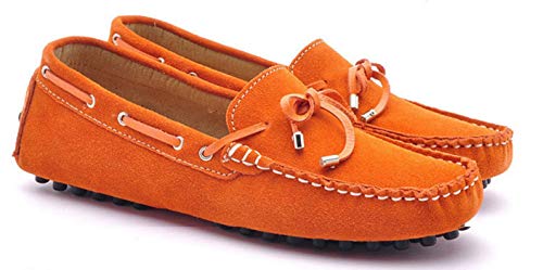 MINITOO - Mocassini piatti scamosciati da donna, con lacci, comodi, Arancione (Arancione), 34.5 EU