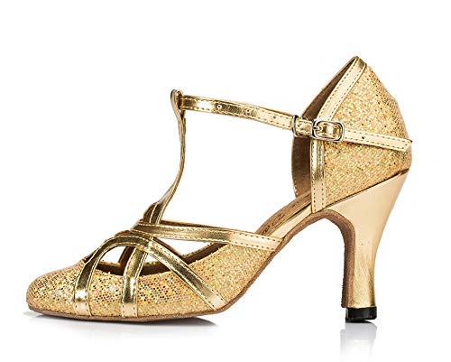 MINITOO QJ6133 Donna Punta Chiusa Tacco Alto in Pelle PU Glitter Ballroom Scarpe da Ballo 3.15" Tacco Oro EU 38.5